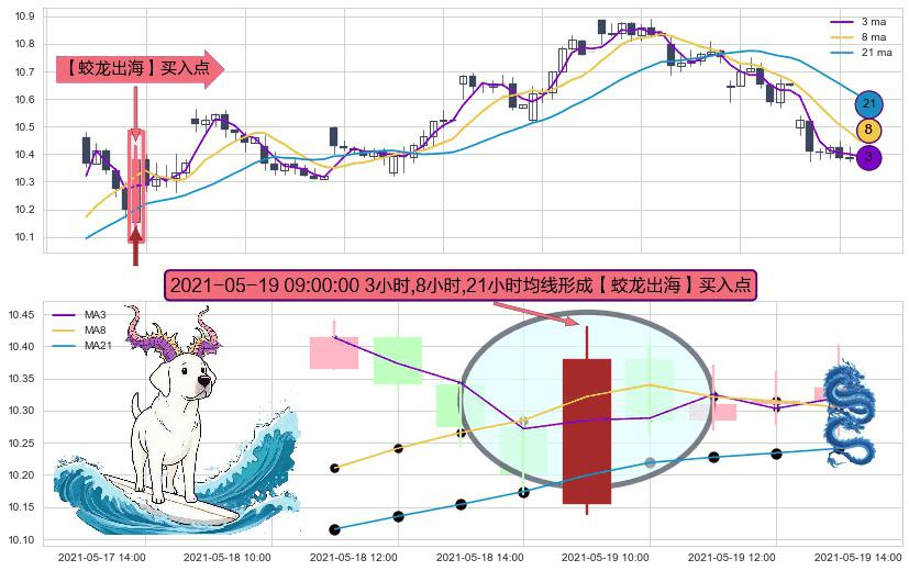 形态多维评估: ⚀ 2021-05-19 09:00:00小时显现 3小时-8小时-21小时均线 【蛟龙出海】买入点 看多信号,后市看涨,买入