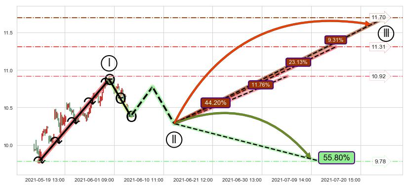 ➢ 循环浪继续向上【最低】位置(07-06:11, 10.92),匹配聚类样本比例26.60%, 可能性概率11.76%