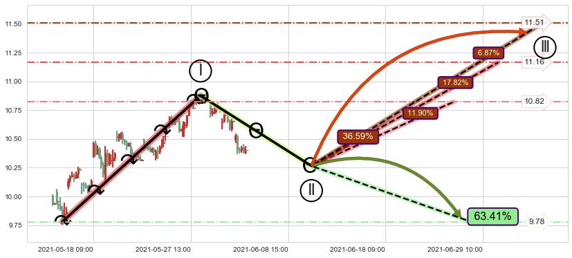 ➢ 循环浪继续向上【最低】位置(06-25:09, 10.82),匹配聚类样本比例32.53%, 可能性概率11.90%