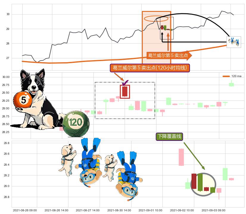 从2021-05-27 09:00至2021-08-23 10:00,共包含336个小时,阶段股价下跌-29.50%,阶段股价变动位移路程比: 1 : 5