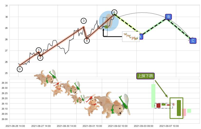 ➢ 收盘价(08-30:10: 28.29 )→回踩→第二根k线低点(08-30:09: 28.34 )