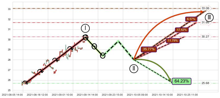 ➢ 循环浪继续向上【最高】位置(10-28:12, 33.06),匹配聚类样本比例18.35%, 可能性概率6.57%