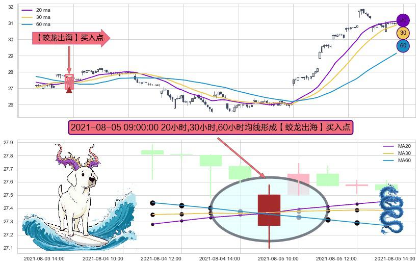 形态多维评估: ⚀ 2021-08-05 09:00:00小时显现 20小时-30小时-60小时均线 【蛟龙出海】买入点 看多信号,后市看涨,买入