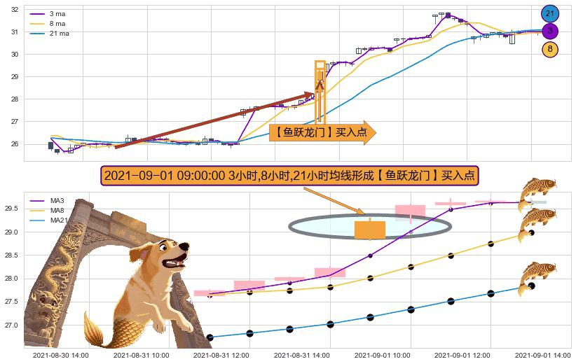 形态多维评估: ⚀ 2021-09-01 09:00:00小时显现 3小时-8小时-21小时均线 【鱼跃龙门】买入点 看多信号,后市看涨,买入