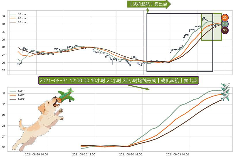 形态多维评估: ⚀ 2021-08-24 12:00:00小时-2021-09-08 12:00:00小时显现 10小时-20小时-30小时均线 【战机起航】卖出点 看空信号,后市看跌,卖出