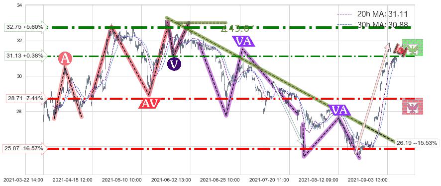 ➢ AI预测: 假定反转继续,第❸价格目标位置(09-21:11, 32.87)