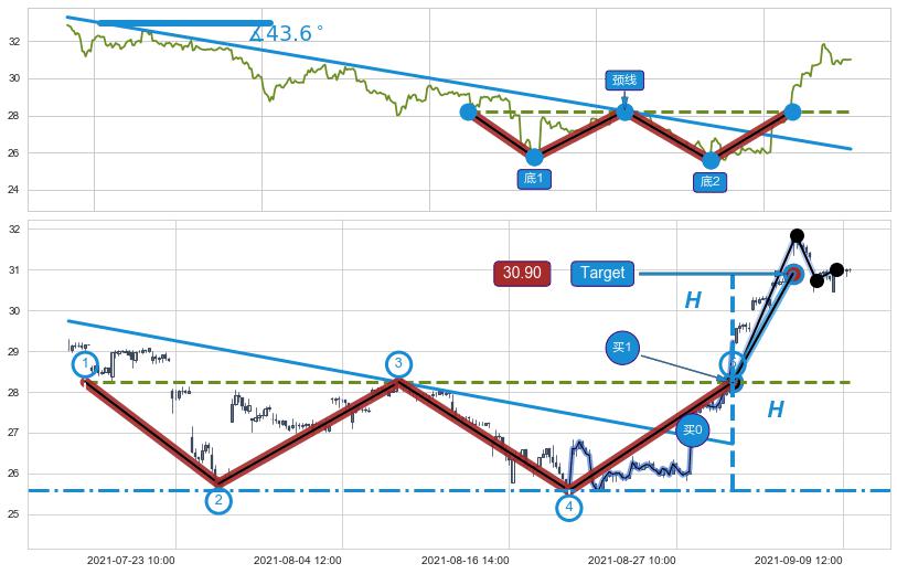 ➢ 【买1】: 激进型 买点 →(09-01:09: 28.24 )形成突破双重底【反转】形态