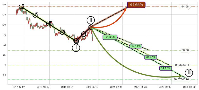 ➢ 循环浪继续向下【最低】位置(2023-03-22, -36.0780216),匹配聚类样本比例24.28%, 可能性概率14.17%