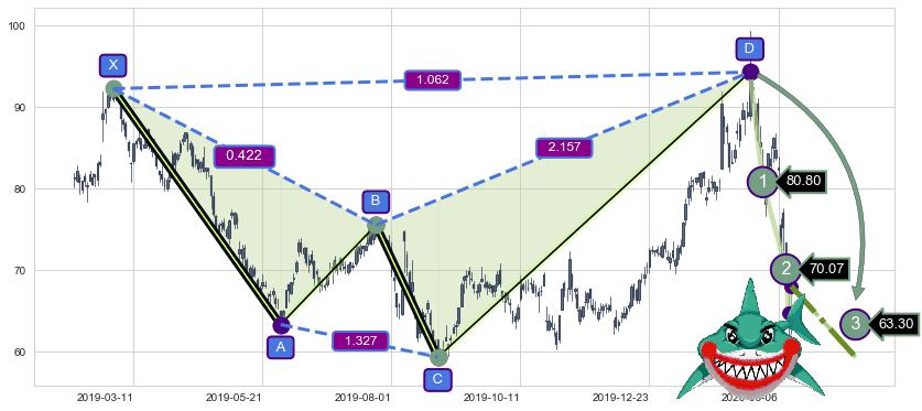 ➣ 已完成【鲨鱼】形态起点X: 2019-02-27, 终点D: 2020-02-20, 共248交易日