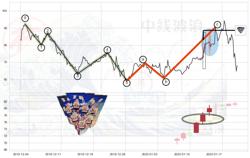 ➣ 波浪理论:猜想击穿突破c点后继续上涨 → 上涨 → 机会信号 → 小趋势跟踪