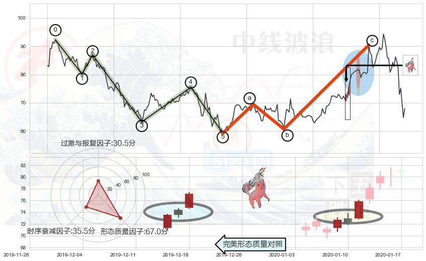 ➣ 循环浪继续向下【平均值】位置(2020-12-23, 58.17),匹配聚类样本比例54.75%, 可能性概率27.30%