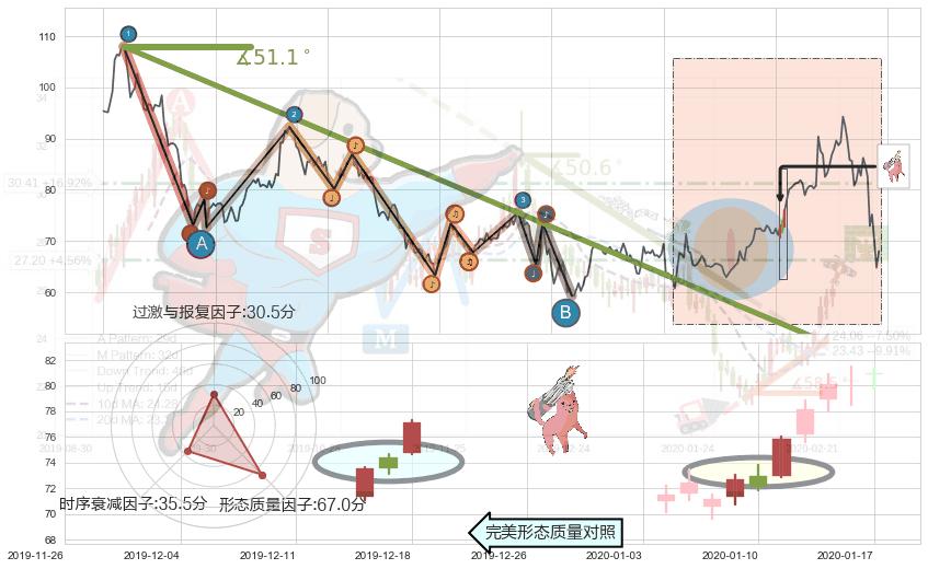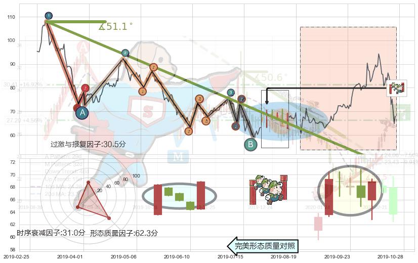 从2018-11-07至2019-09-27,共包含223个交易日,阶段股价下跌-40.36%,阶段股价变动位移路程比: 1 : 9,下跌趋势角度: 51.1