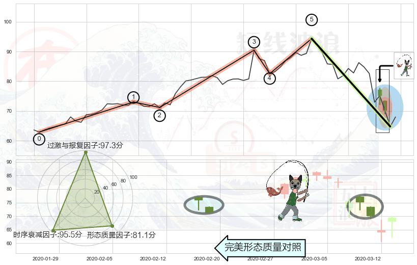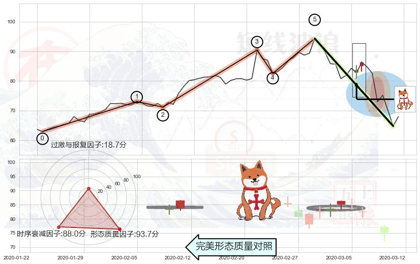 ➢ 🕰 价格走势在2020-03-10至2020-03-11期间形成吊颈线(上吊线),残存影响值:-4.73