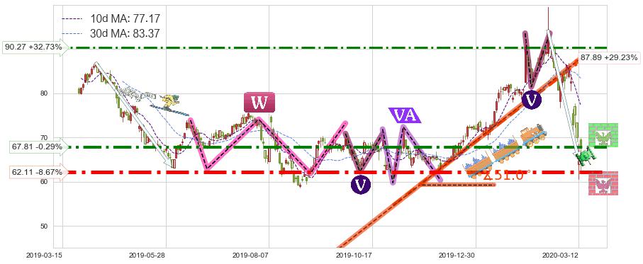 ♘ 支撑价格位62.11,可信任强度96.37%,距离最后交易2020-03-13形成的收盘价格68.01相差 -8.67%