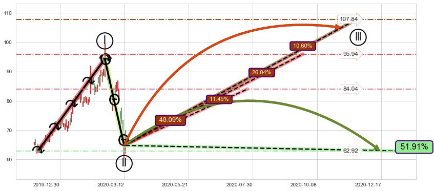 ➢ 循环浪继续向上【最高】位置(2020-11-20, 107.84),匹配聚类样本比例22.05%, 可能性概率10.60%