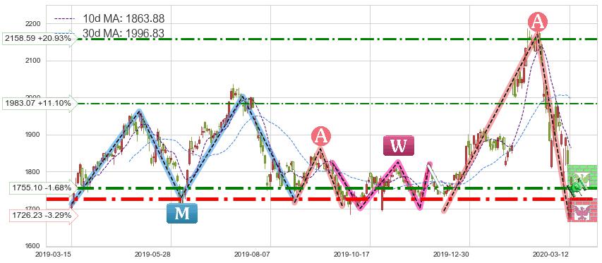 ♘ 支撑价格位1726.23,可信任强度99.93%,距离最后交易2020-03-13形成的收盘价格1785.00相差 -3.29%