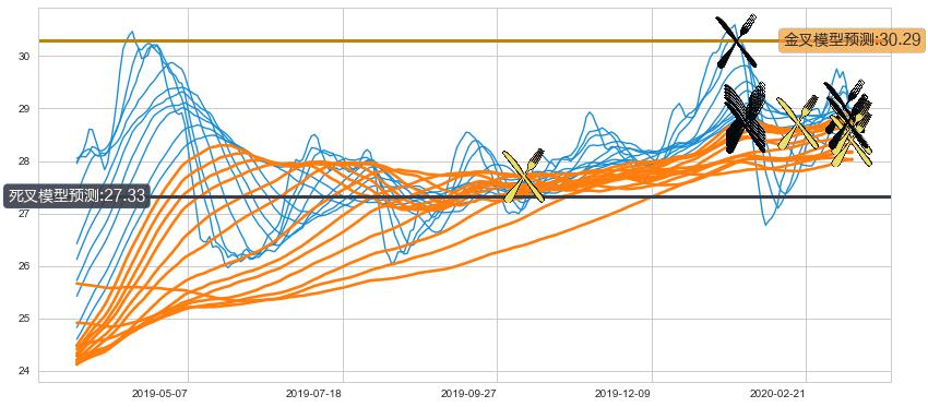 ➣ 55小时均线于(2020-01-23: 28.91)形成【死叉】基于【死叉历史模型】预测死叉后最低波谷价格: 27.17, 死叉后最低价格26.06,已经下跌超出预测最低波谷价格, 预期反弹