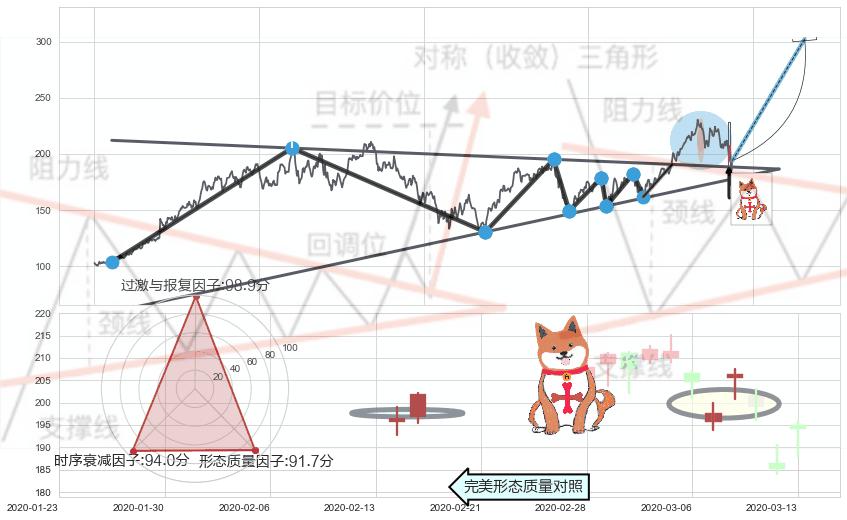 ➢ 早晨之星(黎明之星) 🔜 上升对称三角整理阻力突破转换支撑上涨 综合量化分数:53.53 【中性】