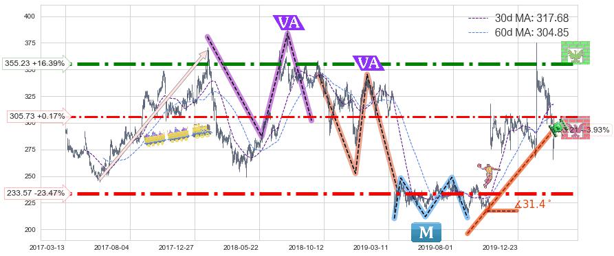 ♘ 阻力价格位355.23,可信任强度94.52%,距离最后交易2020-03-13形成的收盘价格305.21相差 +16.39%