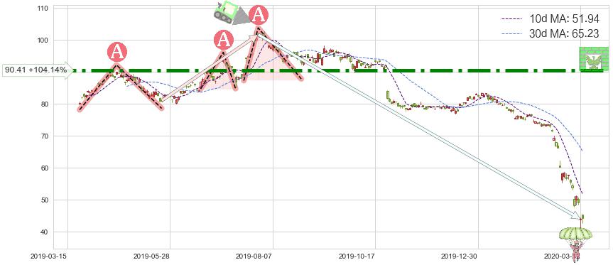 ♘ 阻力价格位90.41,可信任强度99.00%,距离最后交易2020-03-13形成的收盘价格44.29相差 +104.14%