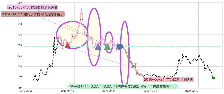 ♘ 在最后的下跌阶段2019-07-26至2020-03-13,存在 持续未破位的阻力位 ,阻力价格113.07,可信任强度79.45%,其距离最后价格73.06相差 +54.77%