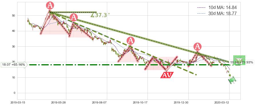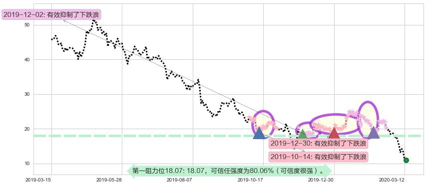 ♘ 阻力价格位18.07,可信任强度80.06%,距离最后交易2020-03-13形成的收盘价格10.94相差 +65.16%