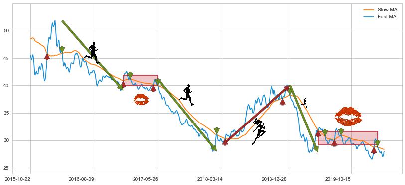 2019-01-14至2019-05-20 慢线与快线呈空头排列, 慢线与快线接触少,无缠绕
