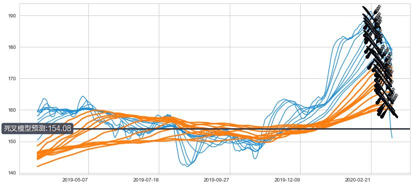 ➣ 90小时均线于(2020-03-04: 170.79)形成【死叉】基于【死叉历史模型】预测死叉后最低波谷价格: 153.69, 死叉后最低价格140.59,已经下跌超出预测最低波谷价格, 预期反弹