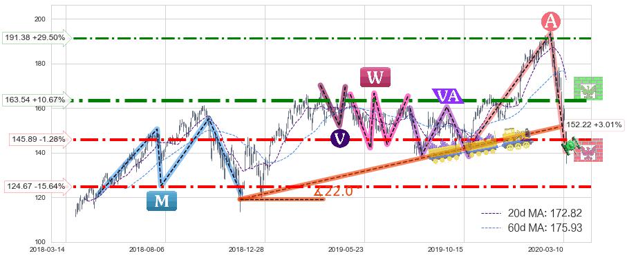 ♘ 阻力价格位163.54,可信任强度88.07%,距离最后交易2020-03-13形成的收盘价格147.78相差 +10.67%