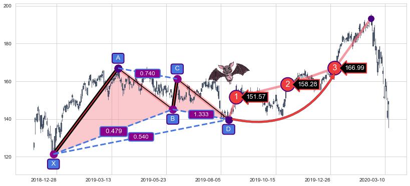 ➣ 已达成看涨【蝙蝠】形态全部的预期目标