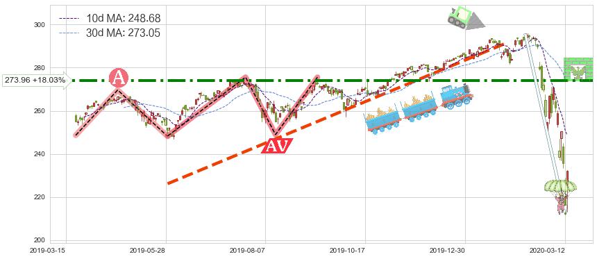 ♘ 阻力价格位273.96,可信任强度84.32%,距离最后交易2020-03-13形成的收盘价格232.11相差 +18.03%