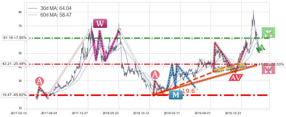 ♘ 阻力价格位61.16,可信任强度68.53%,距离最后交易2020-03-13形成的收盘价格56.65相差 +7.95%