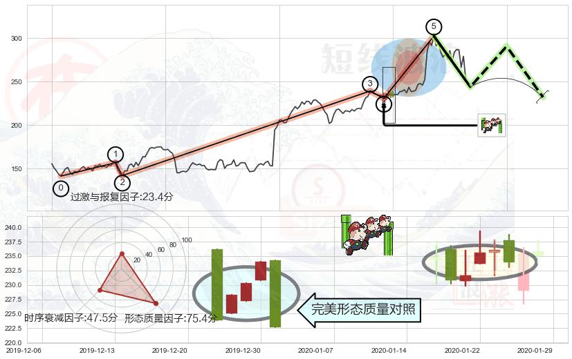 ➢ 下降三部曲(降势三鹤) 🔜 波浪理论上涨浪:浪5回调拐点 综合量化分数:48.53 【中性】