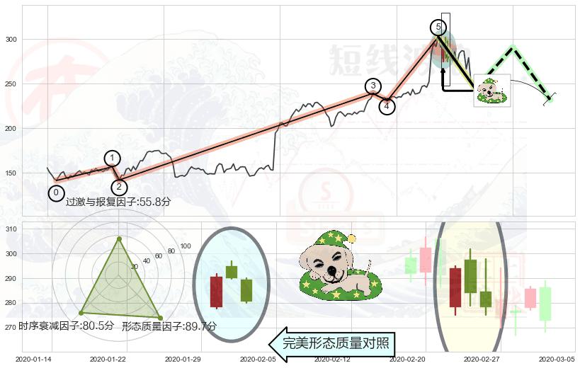 ➢ 🕰 价格走势在2020-03-06至2020-03-09期间形成吊颈线(上吊线),残存影响值:-4.30