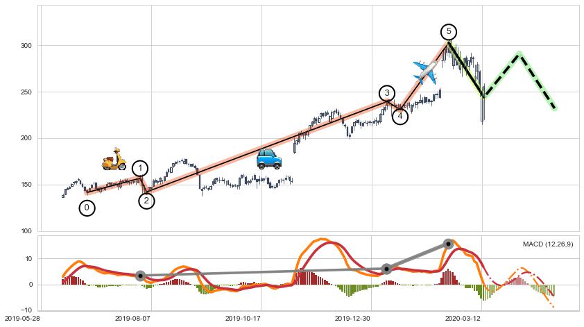 ➣ 第一, 三, 五浪上涨动能逐渐【增强变大】,趋势不断加固