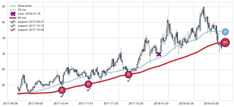 ➢ 最优均线组合共正确确认支撑阻力信号13处,正确确认率 81.25%