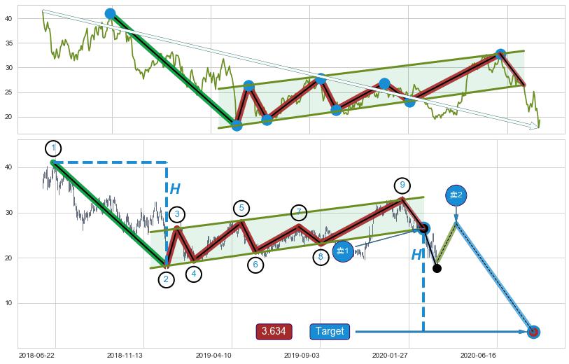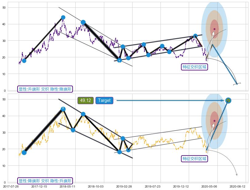 ➣ 降旗形:猜想上涨target达成后 → 下跌 → 风险信号 → 大趋势均值回复
