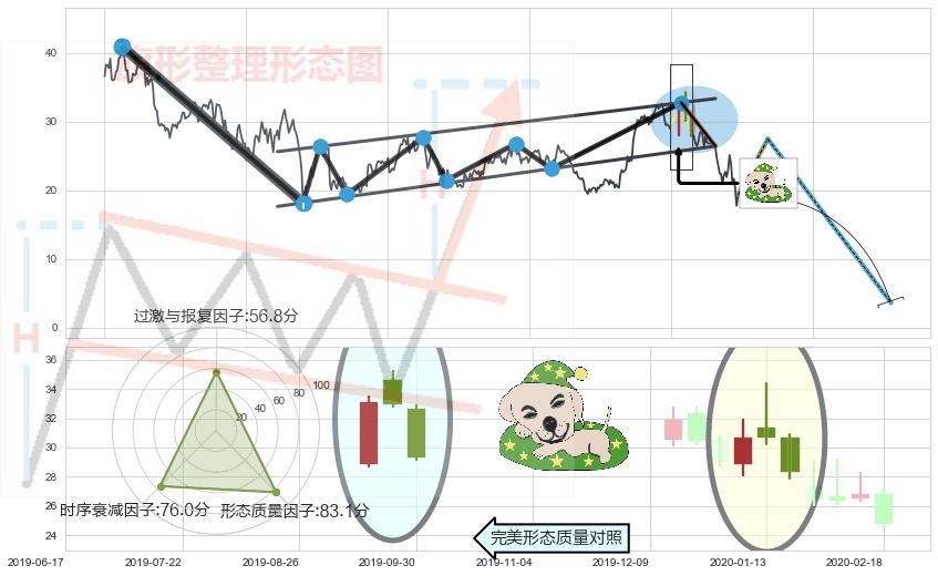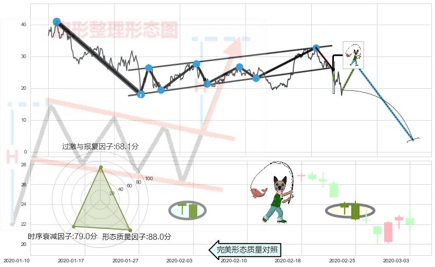 ➢ 顶部尽头线(下山虎) 🔜 升旗形支撑破位转换阻力下跌 综合量化分数:46.88 【中性】