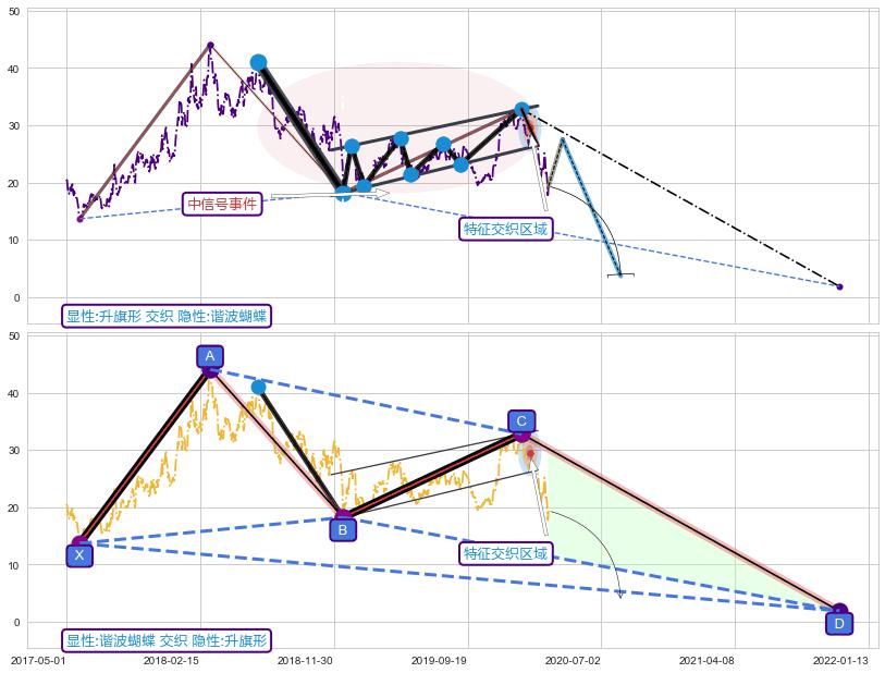 ➢ 升旗形属【中级别信号事件】谐波蝴蝶属【长级别信号事件】中长周期组合信号事件,中长事件长度比59.83%