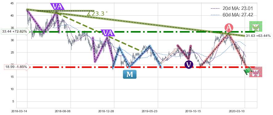 ♘ 阻力价格位33.44,可信任强度95.30%,距离最后交易2020-03-13形成的收盘价格19.35相差 +72.82%