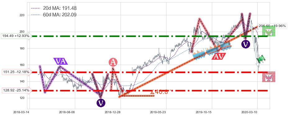♘ 阻力价格位194.49,可信任强度85.12%,距离最后交易2020-03-13形成的收盘价格172.22相差 +12.93%