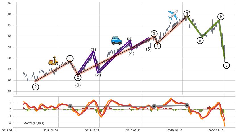 ➣ 第一, 三, 五浪上涨动能逐渐【增强变大】,趋势不断加固