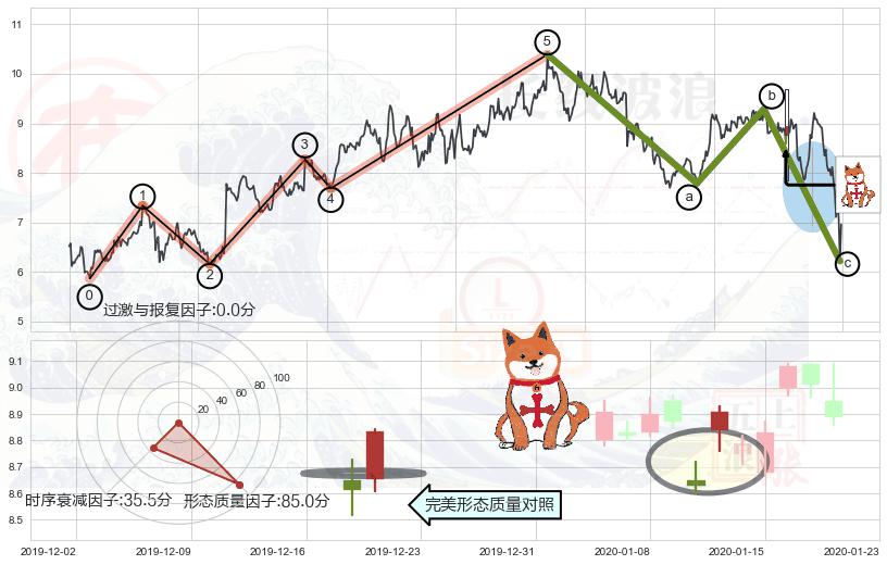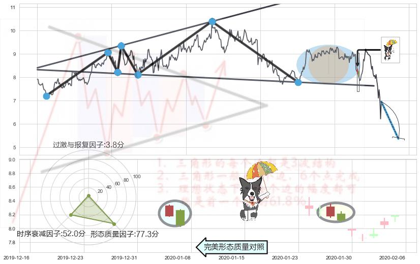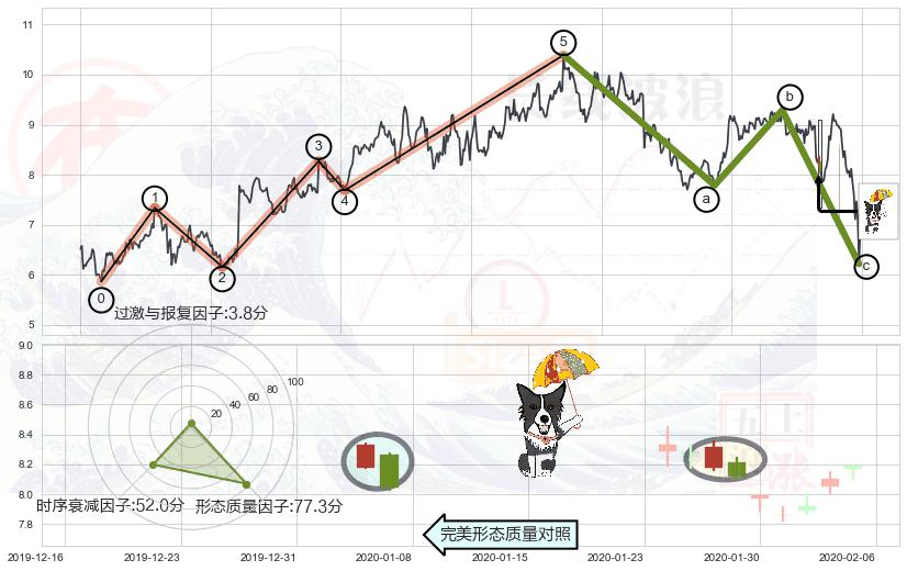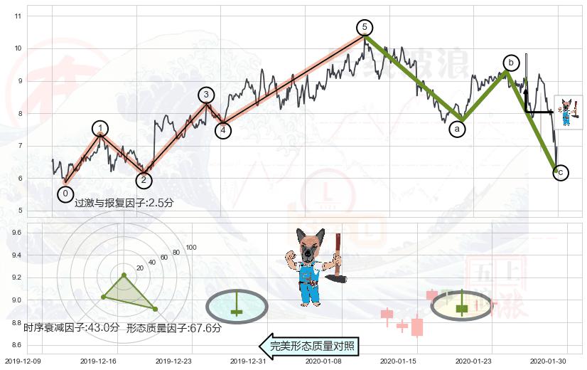 ➢ 🕰 价格走势在2020-01-30至2020-01-30期间形成锤头线(锤子线),残存影响值:2.77