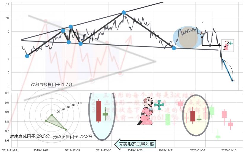➢ 下跌身怀六甲 🔜 扩散三角反转支撑破位转换阻力下跌 综合量化分数:48.99 【中性】