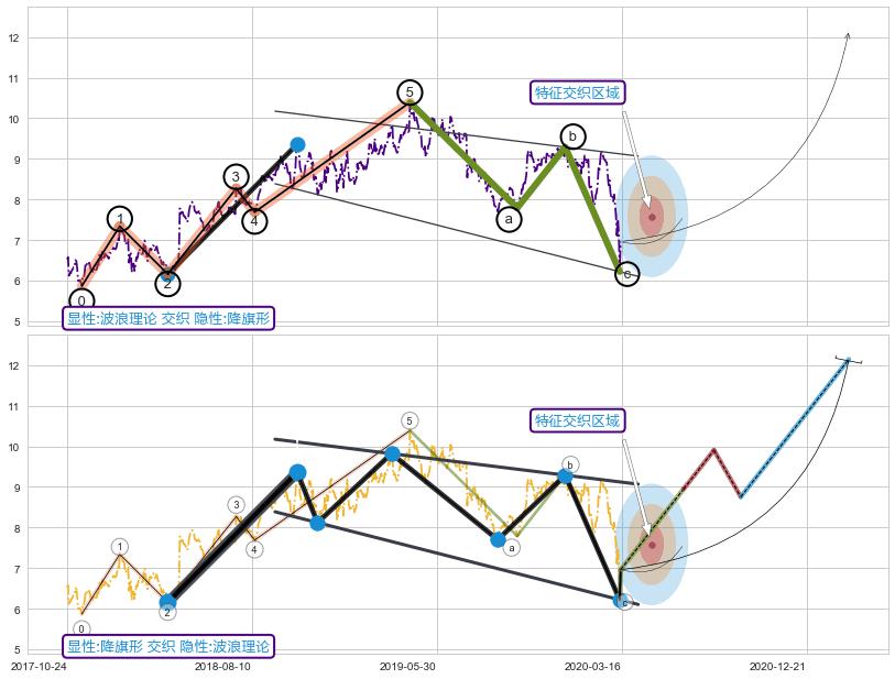 ➢ 波浪理论与降旗形信号事件周期长度级别相同,同周期信号事件