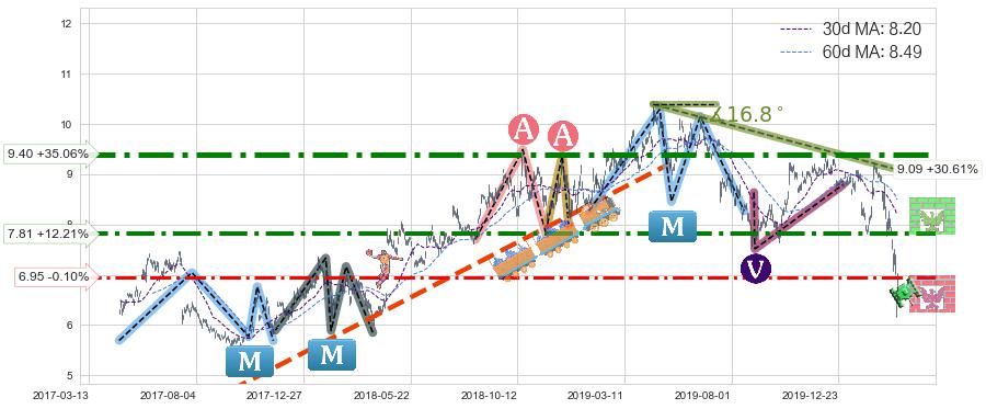 ♞ 30日均线:8.20,60日均线:8.49→ 快线<慢线