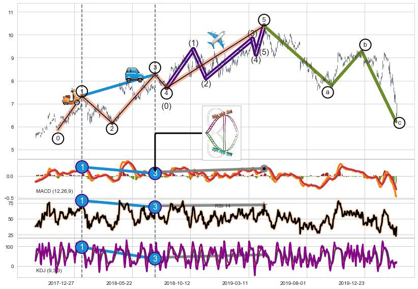 ➣ 波浪理论:猜想达到c点后小回调终止反转上涨 → 上涨 → 【拐点】临近 → 阶段均值回复结束后继续大周期趋势跟踪
