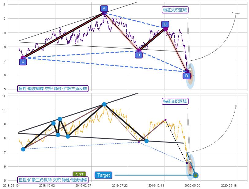 ➣ 已完成【蝴蝶】形态起点X: 2018-05-29, 终点D: 2020-03-12, 共451交易日