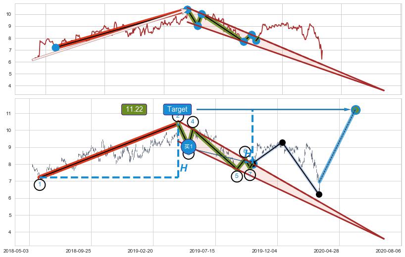➣ AI预测: 假定反转如期而至,第❷价格目标位置(2020-06-23, 8.80)