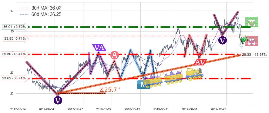 ♘ 阻力价格位36.04,可信任强度89.75%,距离最后交易2020-03-13形成的收盘价格34.09相差 +5.72%